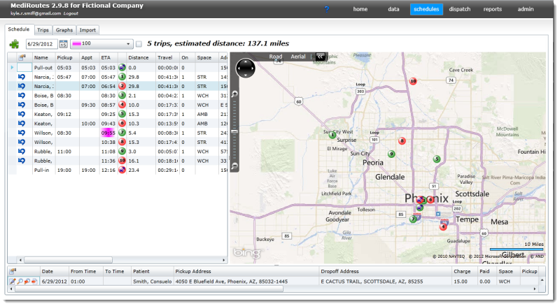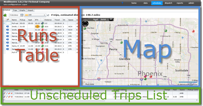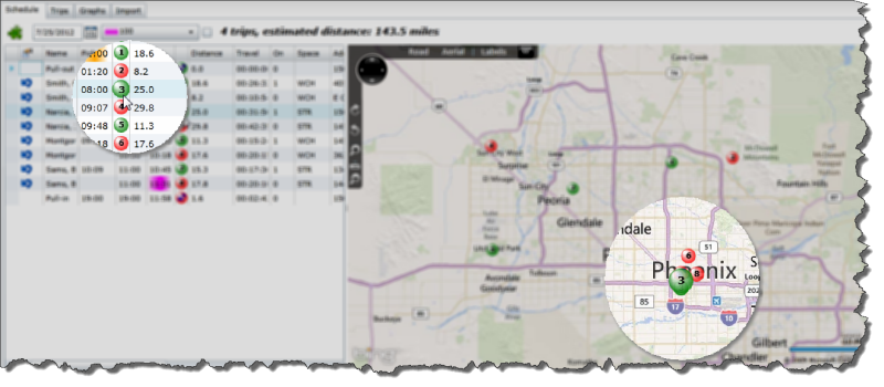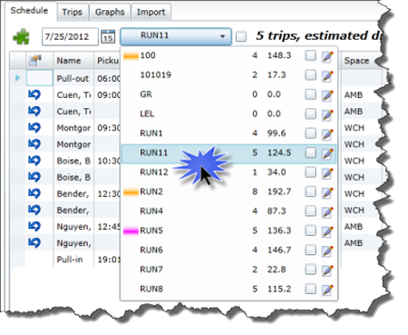 The Schedules Screen is where created trips are assigned to specific runs to create an optimized schedule for the day.