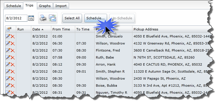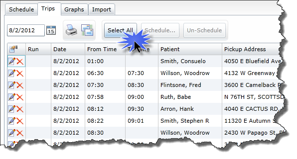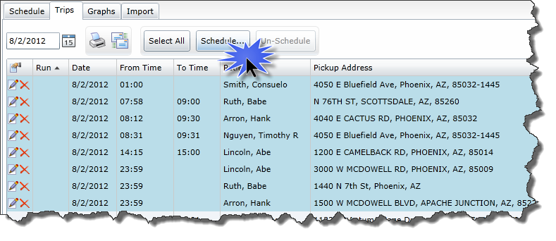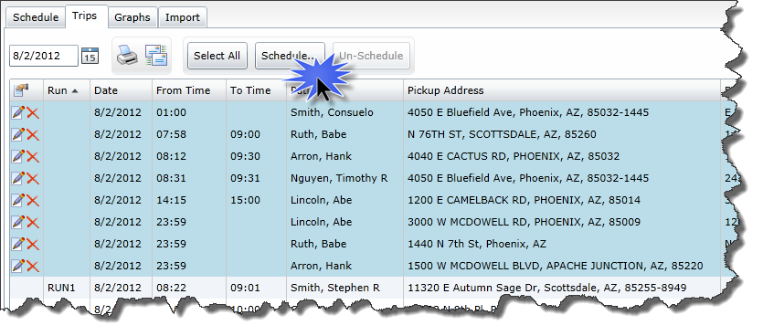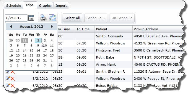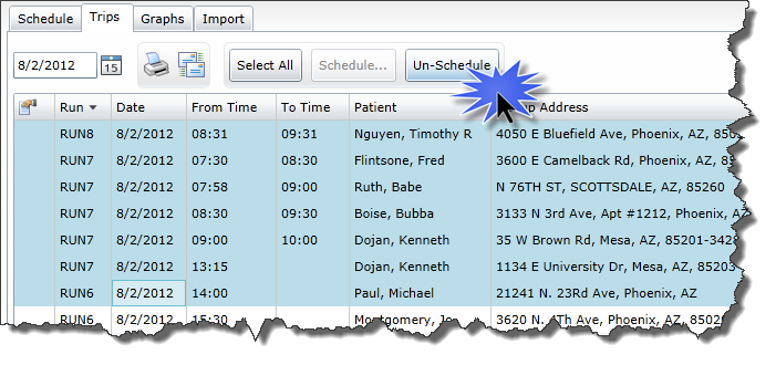 Trips may be unscheduled at any time by simply selecting the trips you wish to unschedule and then clicking "Un-Schedule"