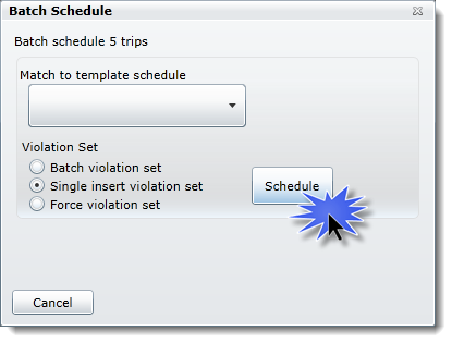 To schedule the trips that were not successfully scheduled using the template scheduling method or a violation set first select them from within the Trips tab
