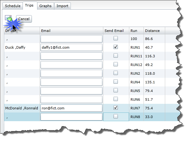 Simply check the boxes within the "Send Email" column to the right of the drivers you wish to send the trips list to and click the