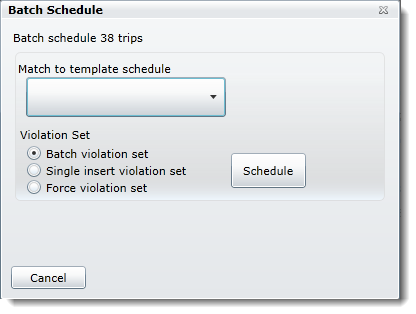 Within this window you may choose a template that you have created in the past for scheduling trips or you may choose a violation set that you wish the algorithm to follow in assigning the trips to runs