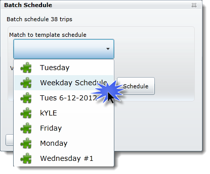 Next select the trips you wish to schedule. In the case that all trips are to be scheduled click "Select All"