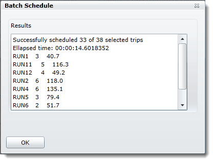The trip will then be placed within the selected run and removed from the unscheduled trips list.